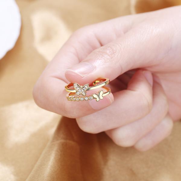 Trend 24K Gold Plating Butterfly Ring Women Japan South Korea Fashion Jewelry
